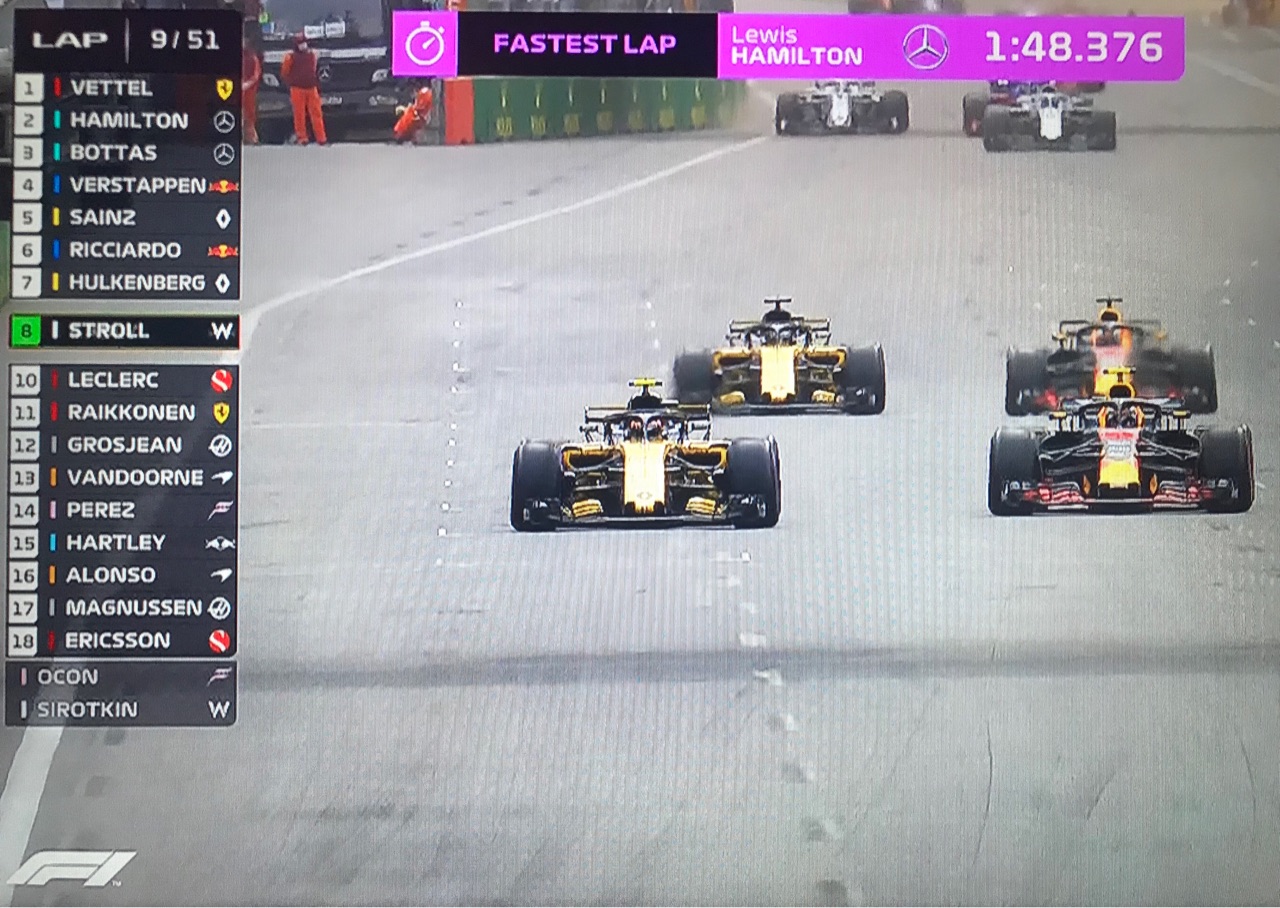 最後の最後で右リヤタイヤをバースト。接触多発レースはデブリに細心の注意を払わなければなりません。大きく3つのレグでレースが二転三転しました。これだけ荒れるレースも近年のF1では珍しいですね。勝てそうで勝てないハミルトンが漁夫の利を得て今シーズン初優勝、スタート直後いや予選時点で既に戦線離脱と思われたライコネンが今回も結果的に2位、そして戦闘力ガタ落ちでも市街地はなかなか得意とするペレスが地味に久々の表彰台登壇となっています。