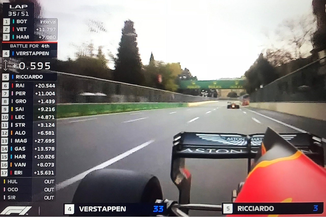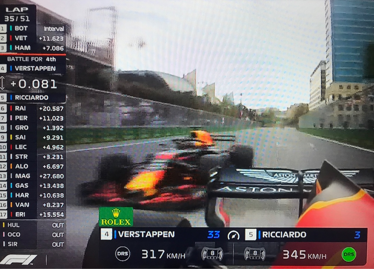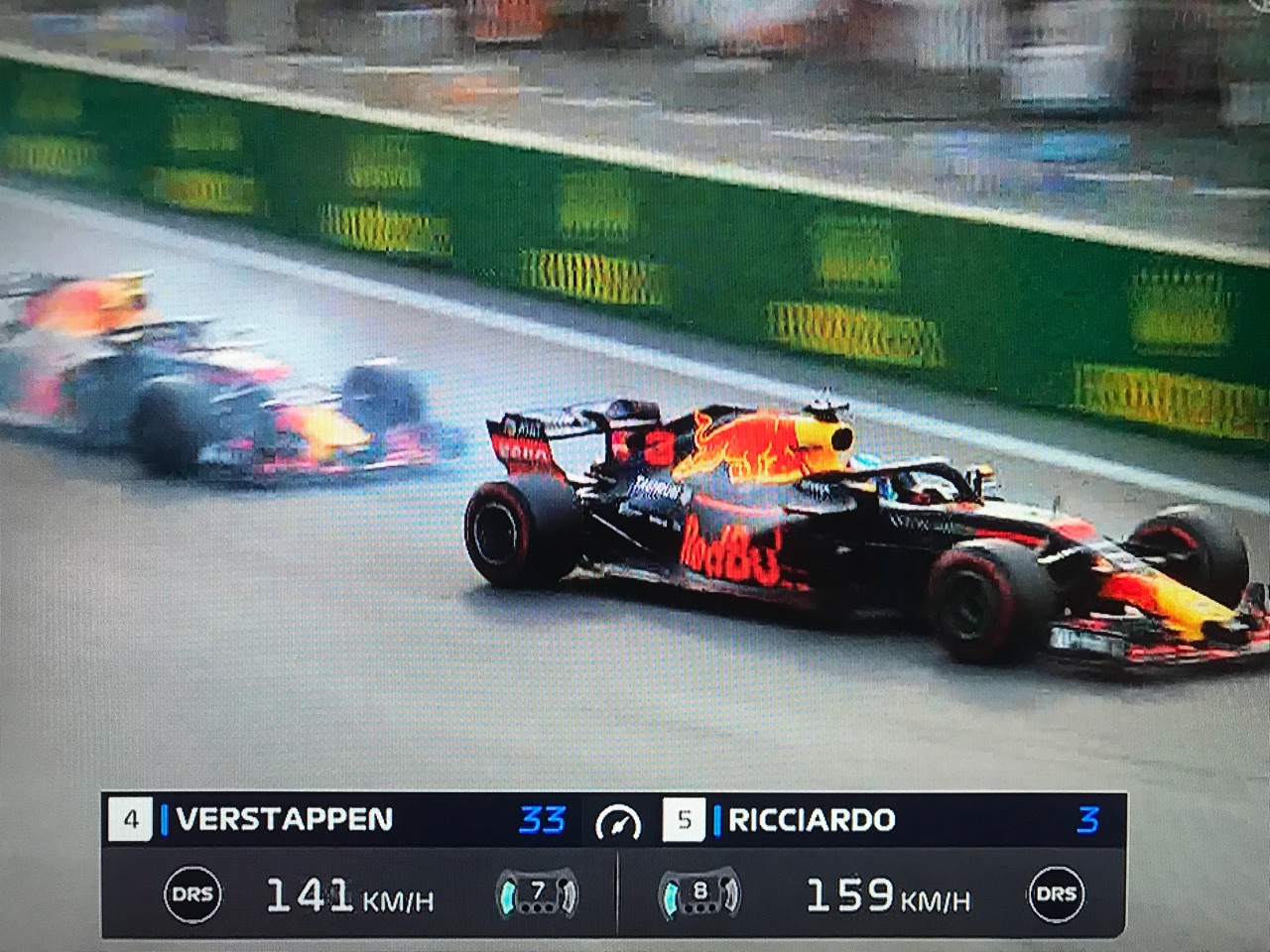 フェルスタッペンの執拗な攻めに一歩身を引いてきたリカルドが35周目に0.6秒差からいよいよ伝家の宝刀を振りかざす!