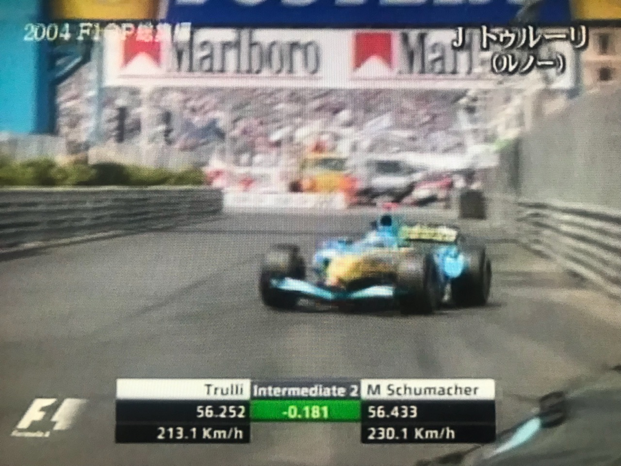2000年代の予選屋さんといえばトゥルーリですね。様々なチームやマシンを渡り歩いて、この年は青いルノーで若きアロンソのお兄ちゃんやってます。もう紅の時代は終わりだ、とテク二カル低速モナコでシューマッハの前に立ちはだかる。