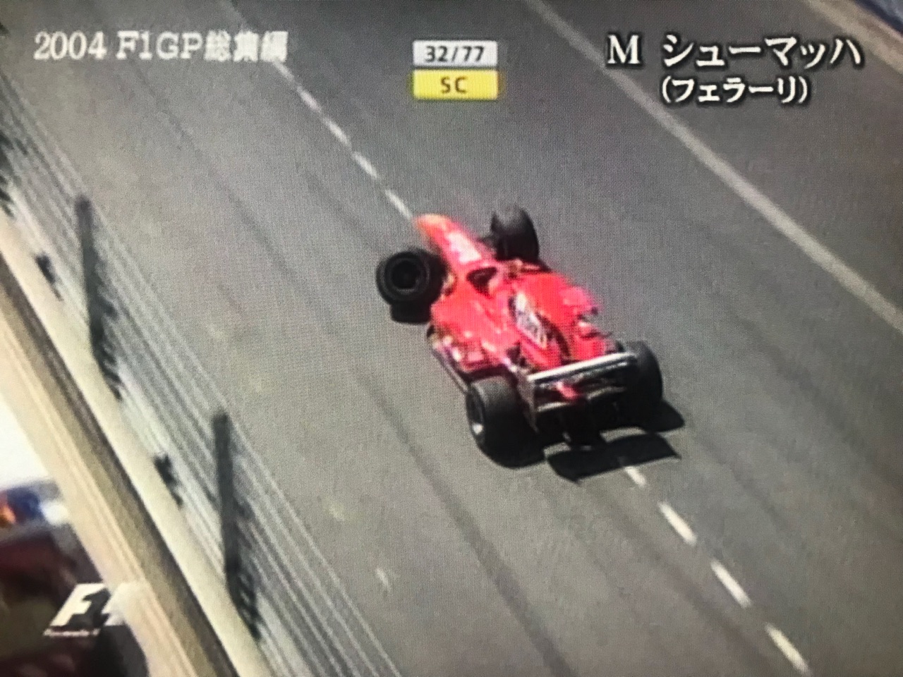 モナコは景色に見とれている余裕はありません。若くまだまだ青いアロンソはレース後半の41周目にガードレールにご挨拶。そのお片付けで2回目のセーフティカーが発動されています。先頭はピットを引っ張るM・シューマッハにバトンと続く。