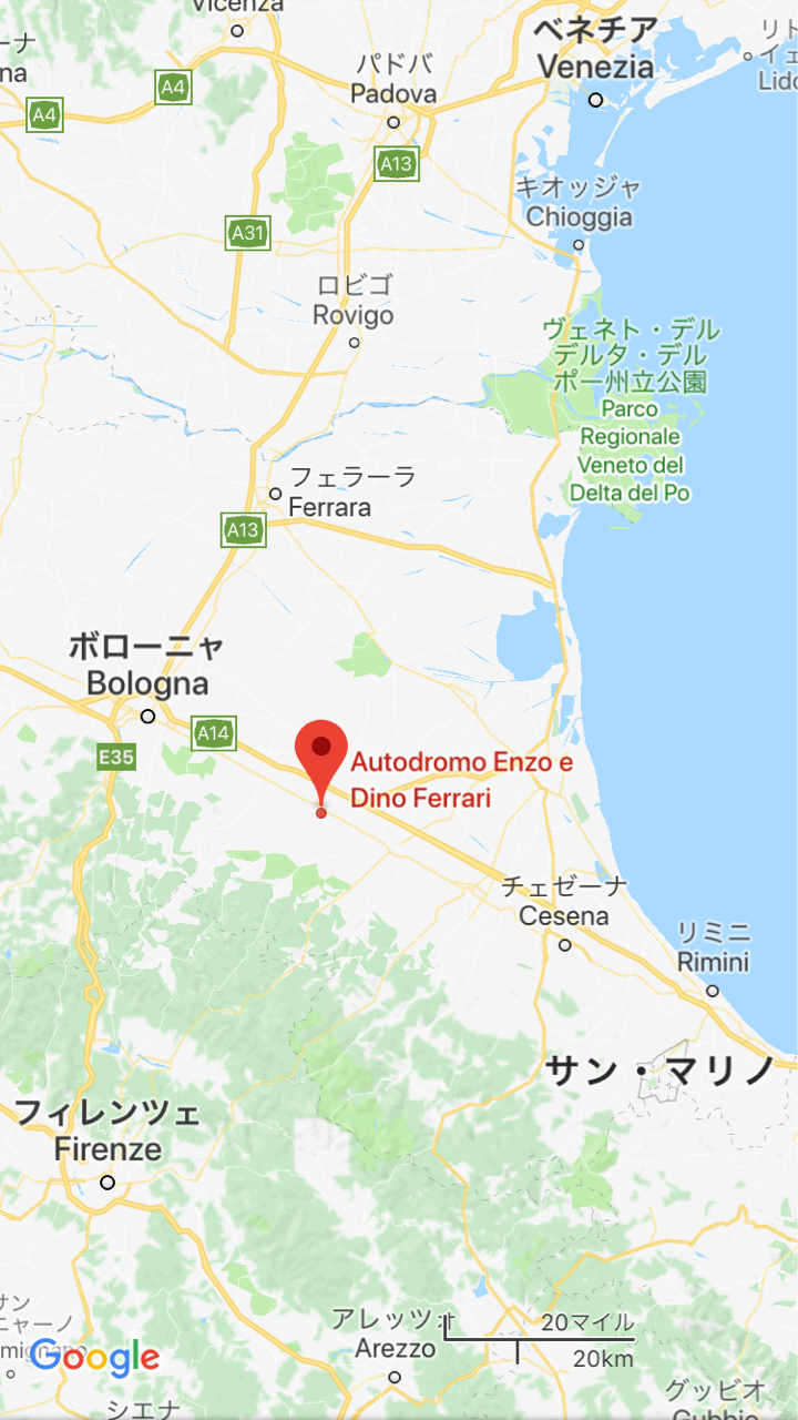 今回最後は「第2イタリアGP」のイモラサーキットです。実際のサンマリノ共和国はさほど離れてはいないものの、住所はれっきとしたイタリア国内のボローニャ地区になります。